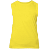 Soft unisex tank top without side seams with border on the neck and at the end of the sleeves. Made from sturdy ring-spun 100% cotton jersey. Simple jersey. Tubular fabric and crew neck with hemmed ribbed edge. Washable at 30 degrees.